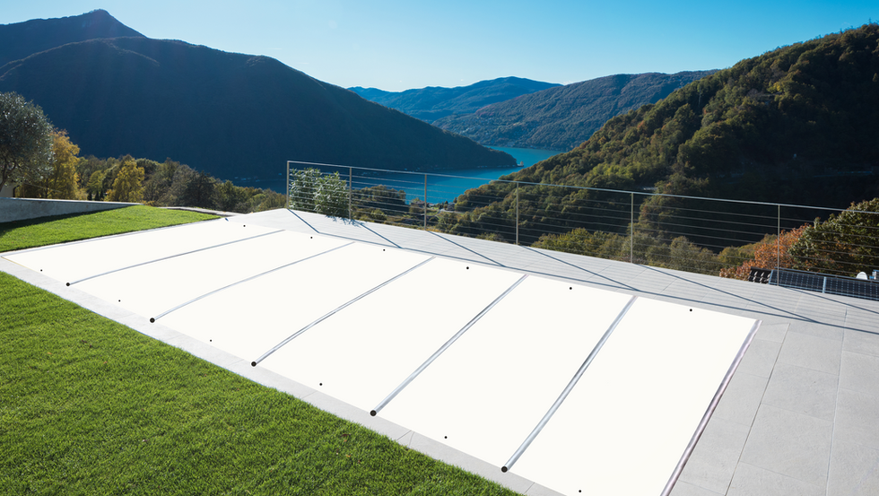 Vorraussetzung ist eine maximale Breite von 6m inkl. Poolumrandung und ein ebener Untergrund, auf dem die Poolabdeckung befestigt werden kann.